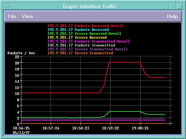 The following graph shows the same scenario with a random simulation. The values of the counter hover randomly around an average rate, enabling flow-based analysis. Again, the average rate is adjustable at run-time.